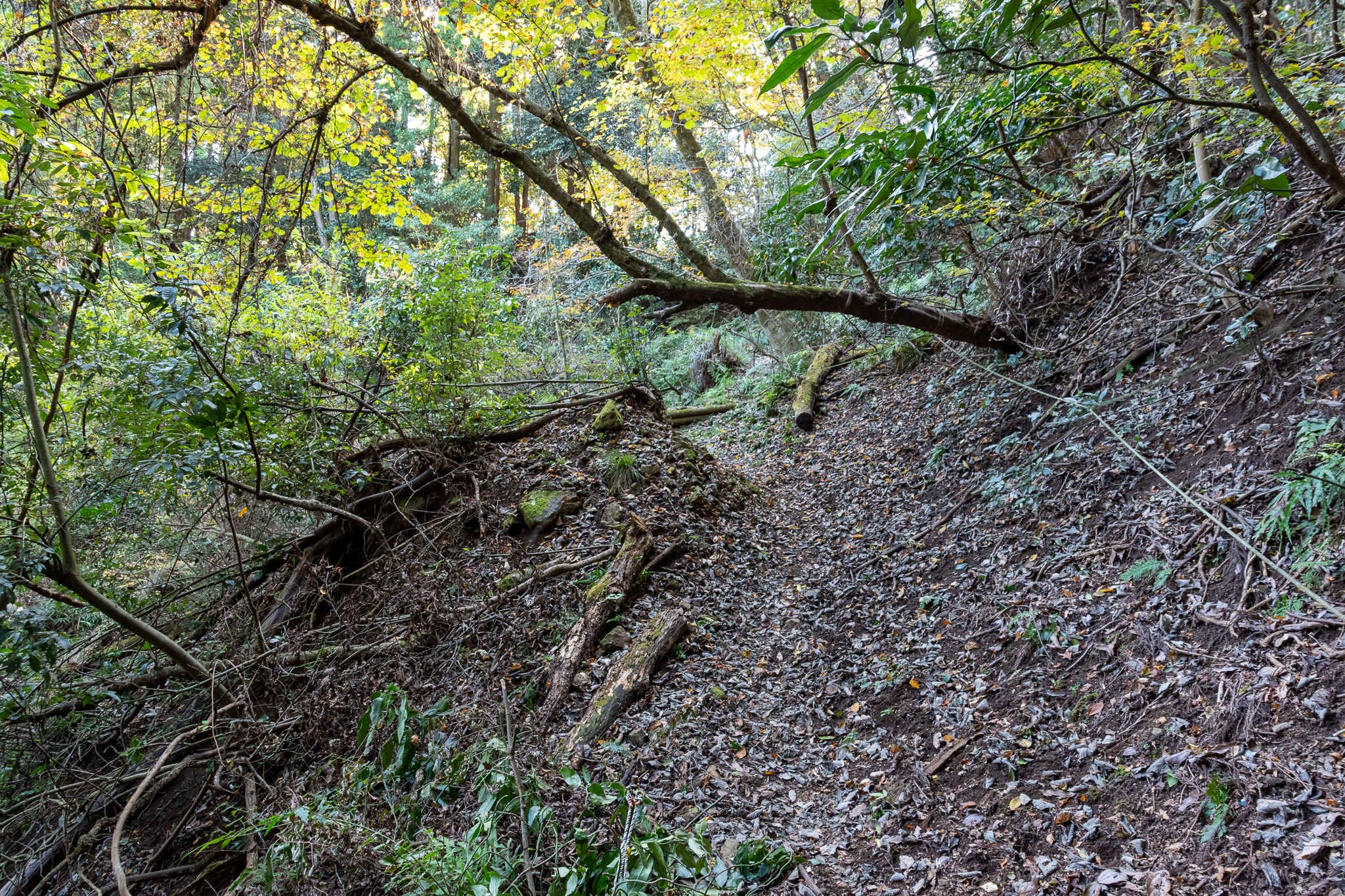 革籠石山から仏果山の間には、少し細くて慎重に歩きたいトラバース道があります。
