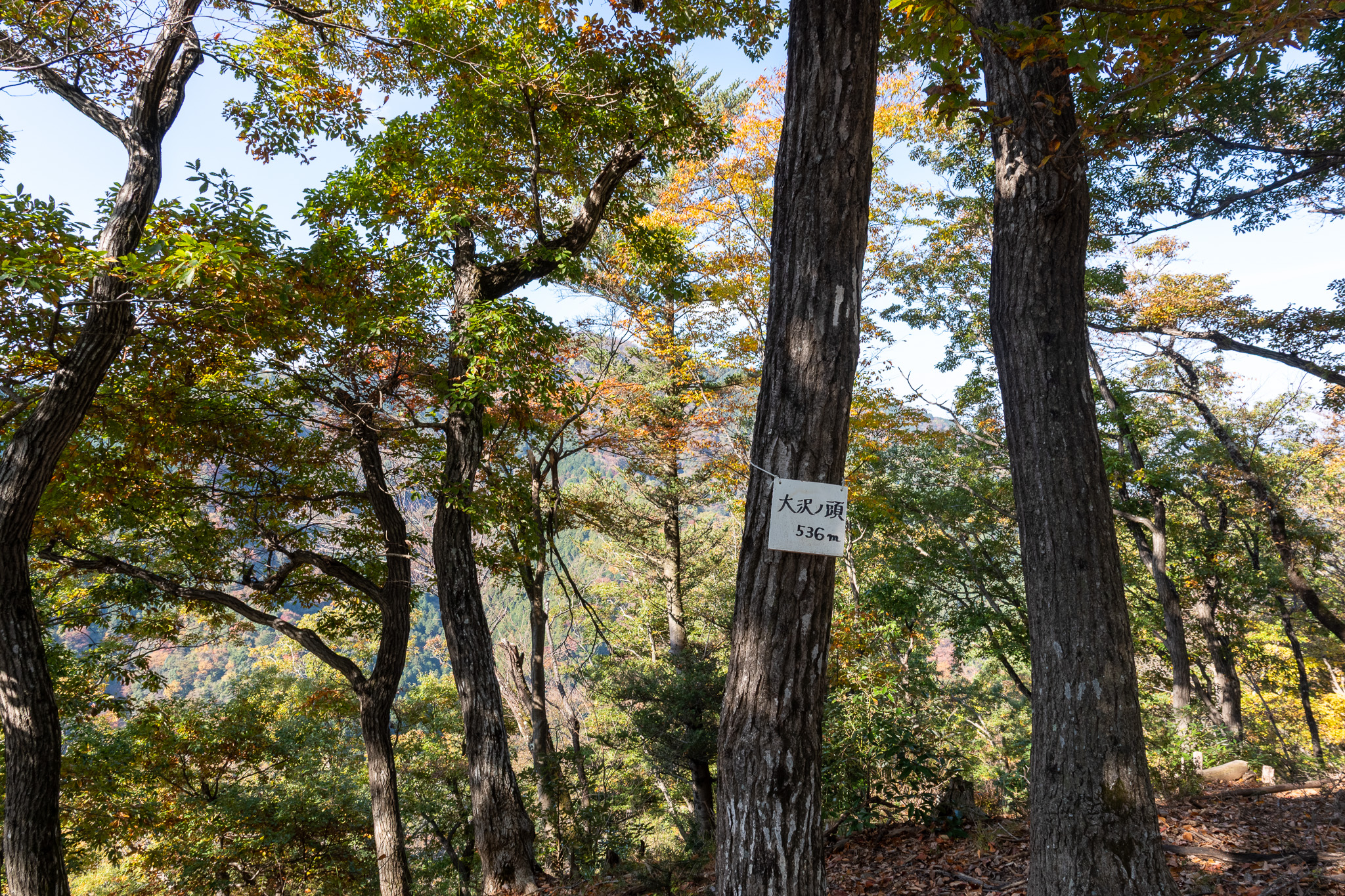 ここには立派な看板はなく、木に手書きで「大沢ノ頭」と書いてあるだけ。眺望も特に綺麗ではないので、滞在時間15秒で引き返します。