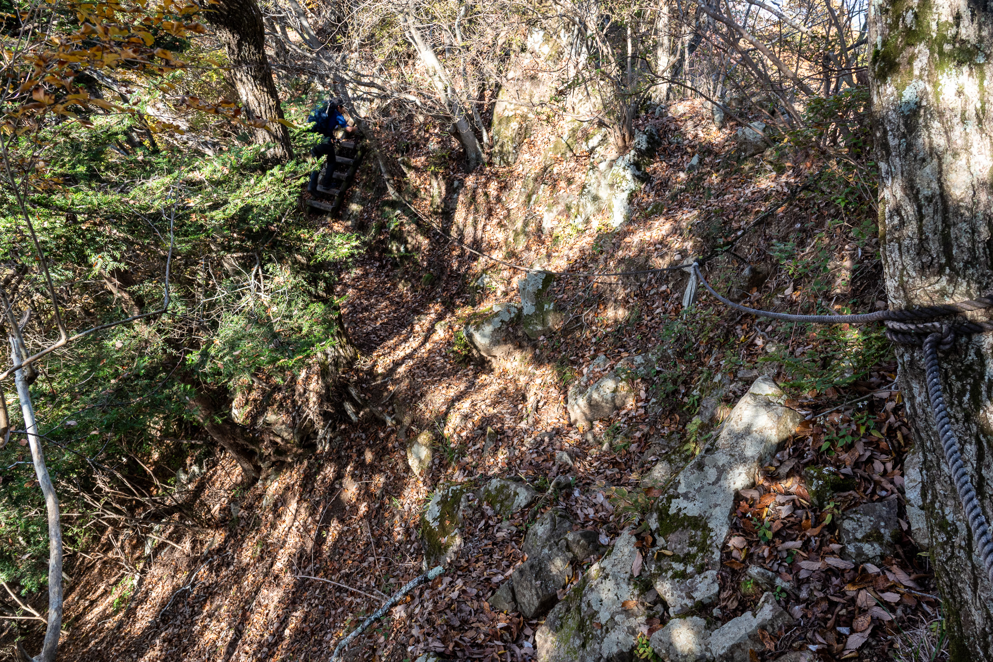 経ヶ岳から先は、一転して150mほどの急な下り。