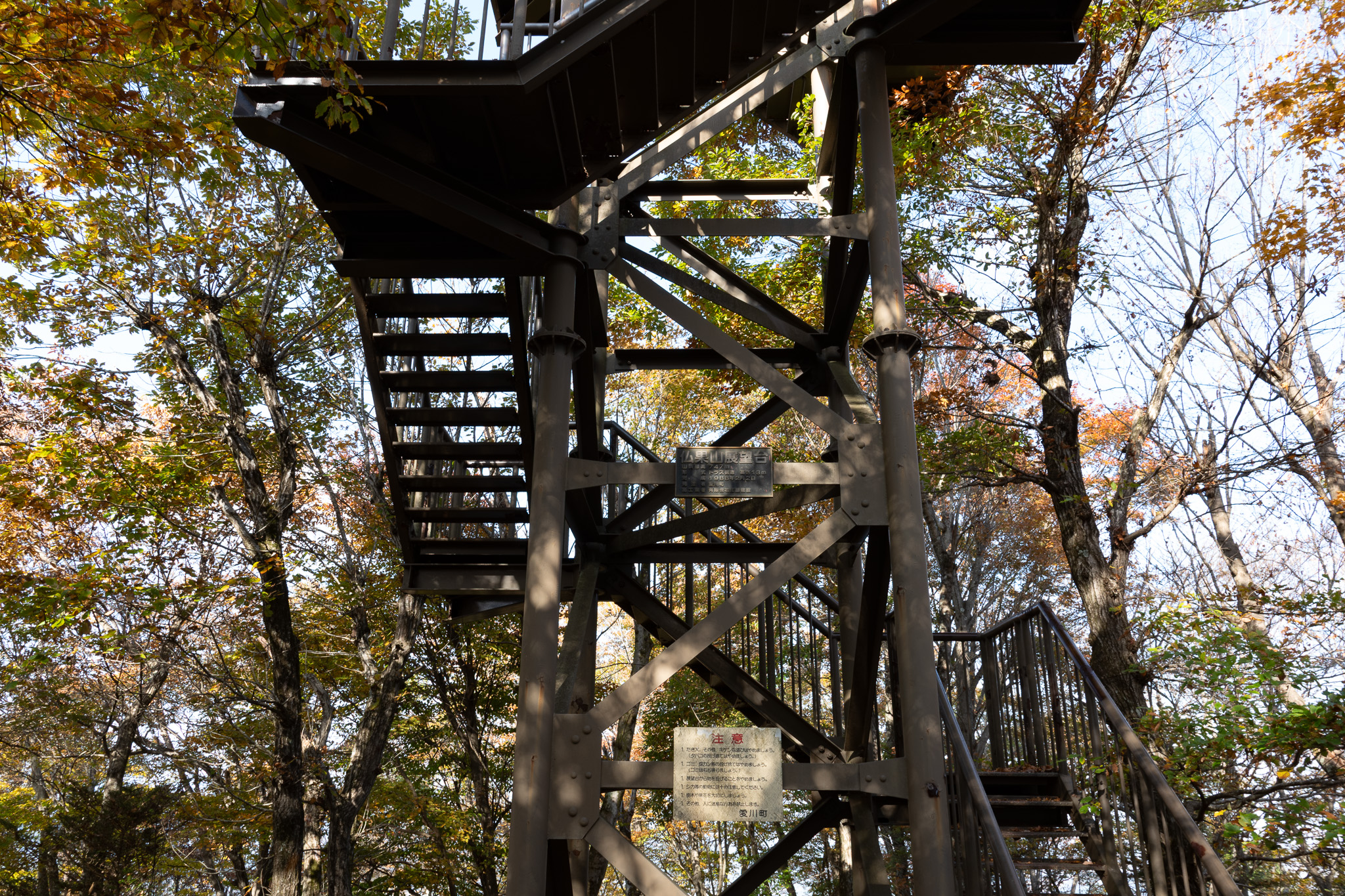 時刻は13時4分。山頂には、高さ13mの鉄製展望台がそびえ立っています。